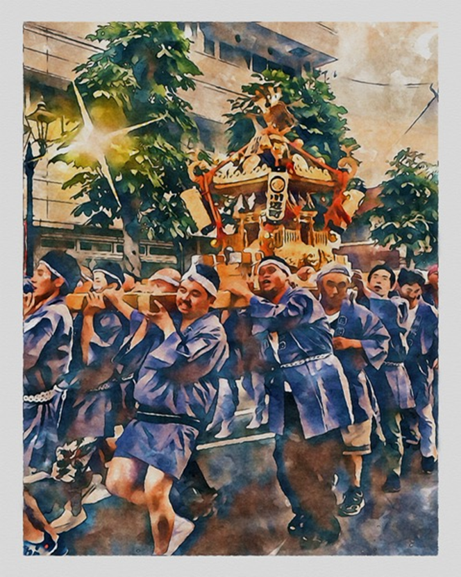 川辺町のお祭りでは男性軍は神輿を担いでの大活躍!応援にも力が入ります。
